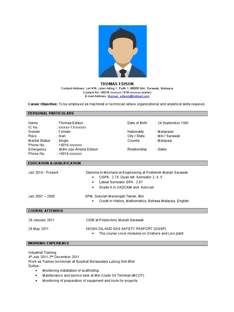 CONTOH RESUME 1 Aminah bt Hashim 12 Jalan Kenari 3 Kubang Kerian 16150 Kota Bharu Tel. Instead of focusing on words turn your ideas into meaningful messages in seconds by using methods. Create the Perfect Job-Worthy Resume to Attract More Attention.